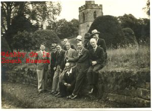 Ashby branch of TocH in 1930's. Back row L to R: unknown, David Statham, Sam May, unknown. Sitting on wall L to R: Dr. Read, unknown, Arthur Statham, Harry Williscroft, Grillen Jackson, Jimmy Jones. Kneeling: unknown.