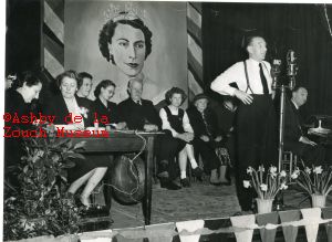 Wilfred and Mabel Pickles during the radio broadcast from Ashby in 1954 of their programme "Have a Go". Jenny Jordan (nee Moxon) being interviewed, with Tony Hicks behind. Mrs. Wilkins of Range Road next to Jenny. S.Lane also in photos.