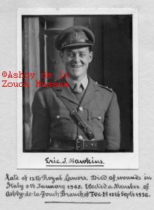 Portrait of Eric J. Hawkins, late of the 12th. Royal Lancers, died of wounds in Italy, 8th January 1945. Elected member of Ashby branch of TocH 18th Spetember 1936.