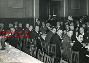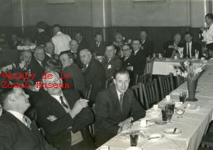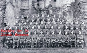 Ashby Home Guard, post World War 2. Date unknown. Front row L to R: Tom Buck, unknown, Albert Broadhurst, Mr. Sandeman, Mr. Abbott (opencast worker), Dr. Lunge, Capt. Sam Kay, Leech, Lieut Charles Pointon, Harry Martin, unknown, George Poyser. 2nd Row, L to R: Bruce Cavanagh, (Packington), Ralph Vaughan, unknown, Steve Merriman, (Scotsman), Harold Shenton, Homer, Chadwick, Fitzer, unknown, Moore, (Packington), Kendall, (Packington). 3rd row L to R: Ralph Layland, Vic Allsop, Poyser (the Green), 2 unknowns, Fred Robey, Jack Harrison, Frank Measures, "Touch" Farmer, Parker, Charlie Barnett, Mr. Sutton (of Sutton's pipe yard) unknown, Ray Whitlock. 4th row L to R: 2 unknowns, Gardner, Ford, John Fitzer, Bill Farmer, Bob Grummett, unknown, Bill Ford, Joe Farmer, H. Jacobs. Back row L to R: unknown, Jack Young, Joe Webster, unknown, George Harper, Mr. Pogmore, Jack Bryan (milkman) Harper, unknown, Lawrence(?)