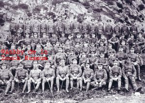 'A' (Hastings) Company, 1st. V.B. Leicestershire Regiment, Conway 1906. Front row: L to R: Bott, Smith, Capt. E.King, Major German, Lieut Hassall, Stonson, Smith, Hill. Others not identified: Everett, Garratt, Thompson, Whitlock, Heafield, Capt. Farmer, Harris, Grew, F. Pringle, W. Pringle, E. Pringle.