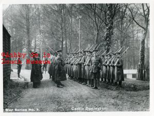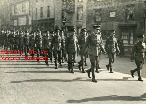Soldiers marching (probably Ashby Territorials) - on annual church parade, Market Street, with probably St. Helen's House in background.