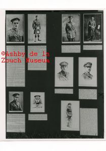 Collage of photos and obituaries on 9 Ashby men who served and died in WW1: Capt Reginald Rawdon-Hastings, Lieut Edward Rawdon Hastings, Capt. Gerald Charles Stewart, Lieut.John Maurice Stewart, Lieut. Leslie Andrew Tugby, Lieut. T.L. Davenport, Capt. Walter Meakin, Lieut. Sidney Arthur Meakin, Capt. Roland Farmer.