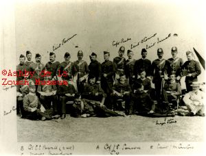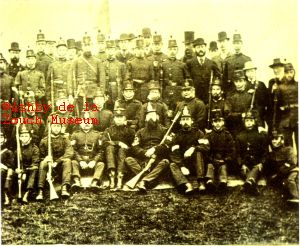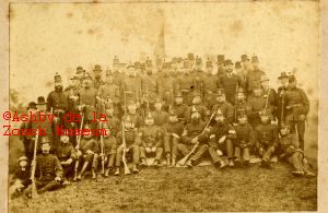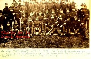 'A' (Hastings) Company, 1st. V.B. Leicestershire Regiment about 1870.The Earl of Loudoun as a subaltern in command. The man with a wand in his left arm is Col. Sergt. Gibson and to his right is Sergt. Matthews.
