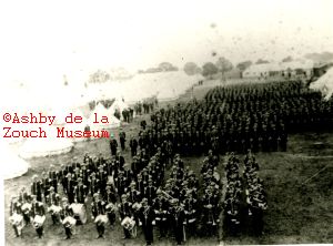 'A' (Hastings) Company, 1st. V.B. , Leicestershire regiment together with their band. Possibly at camp in Bradgate Park.