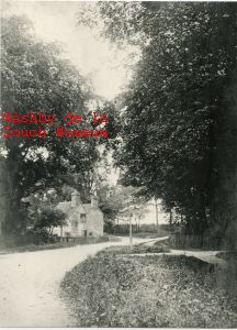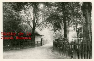 Willesley lane, outbound from Ashby, with one of the lodges of Willesley Hall (which still exists today). Probably taken when Hall was still occupied by the Hastings family (pre 1919)
