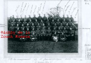 New Lount Home Guard in August 1941. Back row, L to R. unknown, unknown, Eddie Arnold, Jack Evans, 7 unknowns, Don Clayton?. Next row from back. Unknown, Emlyn James, unknown, Cary Hall, Frank Hodges, Jim Widdowson, 4 unknowns, Tommy Hodges. Next row: Bert Garner, unknown, J. Stewart, unknown, H. Wright, 3 unknowns, George Rowlands, Frank Griffin, Billy Williams, Arthur Hodges. Next row: 2 unknowns, George Widdowson, Arthur Martin, unknown, Frank Hodges, Sam Bollard, George Naisbitt, Herbert Rowell, unknown, Tom Haylock. Front row: Bert Broster, Alan Hawkins, John Naisbitt, George Broster.