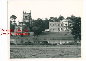 Trinity church and Staunton Harold Hall in probably late 1950's, early 1960's (judging by the style of bus and cars)