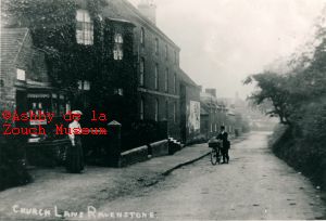 Church Lane, looking the opposite way to previous record. Same house with ivy. Little shop on extreme left, window appears different so could be a later date.