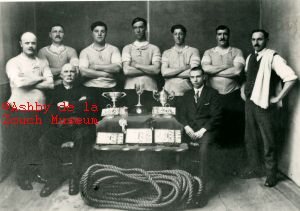Ashby tug-a-war team, possibly around 1910-1920 with their haul
