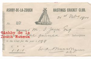 Receipt from Ashby Hastings Cricket Club 21st. February 1900 for