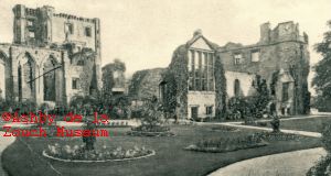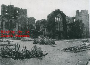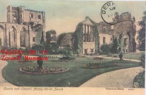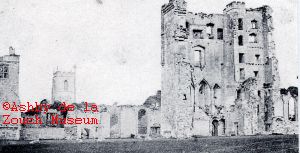Castle ruins, from the north, with Hastings Tower and chapel.
