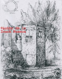 Line drawing of brick tower at castle by M.A.E.Vavasour, August