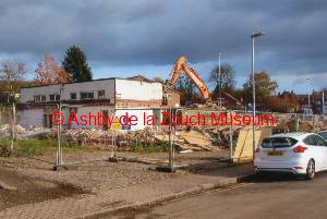 Series of photos showing Health Centre site, before demolition (demolished September- November 2017) and conversion into additional car parking (completed in June 2018). Note the original gates leading to hood Park are refurbished and now at entrance to the additional carpark..