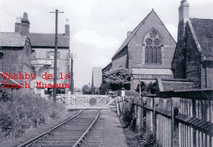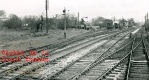 Ashby Goods Yard. Derby branch line curves to the left . (This branch line from Ashby Station to sidings to Holywell Mill & Soap Works remained until circa 1964) Station