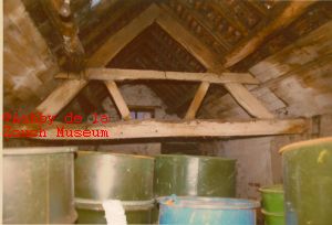 1977. Showing old timbers in the loft.