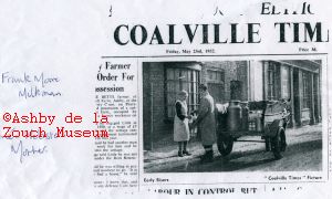 Frank Moore, the milkman from Packington, serving Rene Webster's