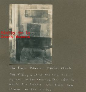 St. Helen's church. Interior, with the finger pillory. A very