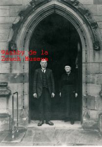 Entrance to St. Helen's church. Standing in doorway are a Mr.