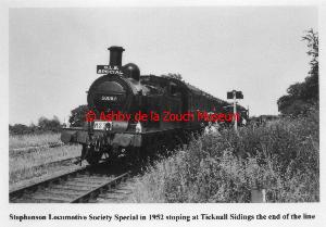 Ticknall tunnel from the west end in 1951. Second photo shows the Stephenson Locomotive Society Special in 1952, stopping at Ticknall sidings, the end of the line.