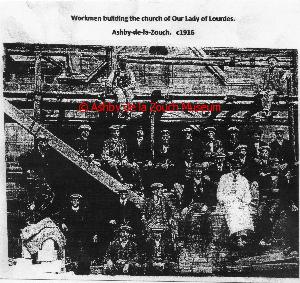 Our Lady of Lourdes Roman Catholic church, workmen building the church circa 1916. FLora Paulyna Hetty