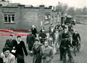 Meredith and Drew Biscuits, factory workers leaving at end of