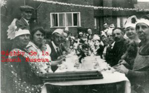 The Callis residents enjoying a party at the rear of the Blue