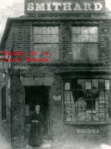 probably Mrs Sarah Smithard in shop doorway. History: Bakers on