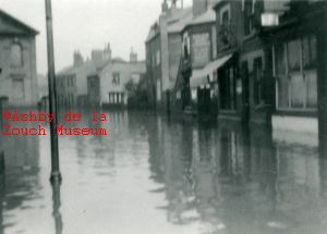 on right during flood of 1932. Exreme left - Eric Ellam's cycle