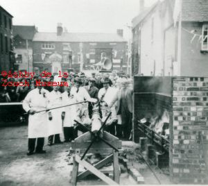 Ox roasting, the culminating effort of Shopping Week 1933.