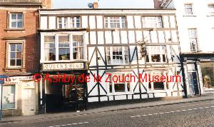 A 1995 view of the Queens Head (public house). On the left can be seen Nationwide Building Society and Sizzling Chicken (take-away)