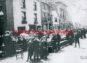 Street party in progress in celebration of Diamond jubilee of Queen Victoria. Dated by occupation of No.80. Businesses identified - No.82 White Hart (public house), No.80 George Maynard (florist and seedsman) - known to be there in 1897 but NOT in 1887. No.78 J.W.Beadsmoore (printer stationer), No.76 Searle and Kelsey (clothier, hatter and hosiers), No.74 The Town Hall.