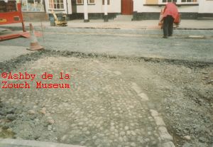 Resurfacing of Market Street 1983-84 revealed cobbled semicircle