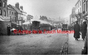 Note horse drawn caravan in centre of picture. Parked car