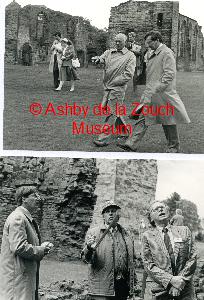 Ashby Castle - visit of Lord Montague and the Duke ofGloucester, 26th June 1985. Second photo shows architects William Whitfield (left) and Jeremy Benson (centre) discussing the castle design with the Duke of Goucester.