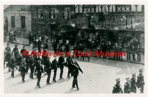 Crowds watching a ?church parade. Date probably 1912. Businesses