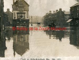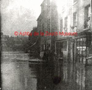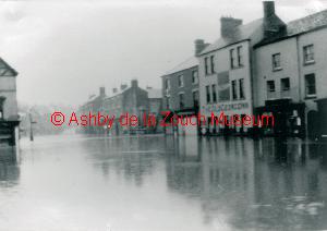 The flood 1932. Note: No.41 Old George Inn, War memorial.