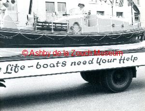 Lifeboat parade in Market Street in the early 1960's. Various businesses identified: F.W.Woolworth, Dewhurst (butchers) Melia (grocers, J. Stone (greengrocers), Shentons (barbers), Hiltons (shoes), Elite (dry cleaners), Isons (hardware).