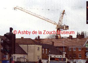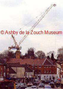 Redevelopment of Kilwardby Street. No.4-6, (formerly Ashby Urban Council offices) into McCarthy & Stone retirement complex. The crane as viewed from Market Street in February 2016.