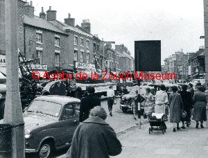 Lifeboat parade in Market Street in the early 1960's. Various businesses identified: F.W.Woolworth, Dewhurst (butchers) Melia (grocers, J. Stone (greengrocers), Shentons (barbers), Hiltons (shoes), Elite (dry cleaners), Isons (hardware).