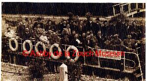 Probably the Ashby butchers on a day out in Windsor in probably the 1950's. People in the rear of boat identified as follows: lady seated,in white coat Lucy Baker, lady with white headscarf Rachel Harrison, other lady with headscarf Norma Hughes, man standing to left Jack Harrison.