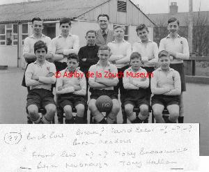 Council School (now Burton Road Primary school) 1937 PET SHOW : P19-0009 Barry Singleton with cockeril, Jack Young looking on. P19-0009A Frank Bott with rabbit, Bob Bonner a local worthy on the left. -0009B: L to R Ken Holmes, Arthur Marbrow, Geoff Mason, Jack Smithard, Nigel Marshall. -0009C: L to R Jack Craddock, Basil Singleton, ? ? ? ? Arthur Marbrow, Ken holmes, Jack Smithard, Ian Goodrum, Nigel Marshall. -0009D: Ken Holmes with reluctant goat. Others include Jack Young, Cyril Wileman, Tony Beadsmore, John Snow. 1938 PET SHOW: -0009E: L to R Colin Glover, Ron Barratt, Don Toon, Bill Bull, ?, Ken Holmes, ?, Les Smith, master Barratt.-0009F: Jeff Mason (son of Tom Mason, blacksmith, Wood St) with horse. -0009G: L to R: Ken Holmes with goat, Colin Gover, Tony Beadsmore, Leo Smith (with tortoise), master Barratt, David Jackson, ?, ? Ian Goodrum in cap, Bill Davies, ?Phillip Bason. SPORTS TEAMS: - 0009H:Netball 1948/9: L to R back row Lucy, ?, Barbara Bryon. Front row ?, Firbon, Rita Blount, Jean Find, Peggy Lester. P0009I: Netball 1952. -0009J: Netball 1951. -0009K: Netball 1952. L to R Back row Mrs Shaw, Lorba Hall, Enid Holmes, ? Front row Freda Gardener, Gillian Smith, Joyce White, Janet Barry. -0009L Netball 1952: L to R back rw Gillian Shorthouse, Mrs Shaw, Shiela Riley, Barbara Stonya. Front row Peggy SLater, Pat Young, ?, ?, Prema Slater.-0009M:Netball 1953. -0009N & -0009O & -0009P : Netball 1953. STAFF in 1952 approx: L to R back row, Don Francis, Mr LAwson, Mrs Shaw, Mr Saddington, Mr Nicholls. Front row Mrs Rice, Mrs Hurd, Mrs Jackson, ?, ?. -0009R: Football 1953 L to R back row, ?,?,?,?, Dave King, Alan Ward. Front row: Mick (Cobby) , Webster, Kenneth Hicklin?, Dave Randall, ?, ?. -0009S: Football 1952: L to R. Back row ?, John Sharpe, Mick Avins, Tony Hallam, ?, Brian Waller, ?, Mr. Jackson. Front row ?, David Stringer, David Jackson, Malcolm Sharpe, ?. -0009T: Football 1953. L to R: Brian ?, David Ensor, Brian Meadows, ?,?,? Front row ?, ?, Tony Broadhurst, Brian Newborough, Tony Hallam. -0009U: Football 1952 L to R back row Ray Moore, Mick Jones, John Whitehead, Terry Penny, Evin Buck, Don Francis. Front row Brian Durdon, Colin Snape, Rex Lewthwaite, Peter Jackson, Nobby Wileman. -0009V : Football 1952. SPORTS DAY IN HOOD PARK EARLY 1930'S: 0009W High jump and 3 legged race. 0009X Wheelbarrow race. SPORTS DAY in HOOD PARK 1938 -0009Y Peter Hall winning a running race, Grundy in 2nd. -0009Z Boys team 1938. L to R back row Mr Francis, Mr Saddington. Group includes: Colin Orton, Bob Archer, Gardener, Miller, Geoff Mason, Peter Hair, Mike Foulstone, Jones, Eric Hartwell, Harold Bosworth, David Jackson, Peter Orton, Brown, Peter Miller, Harry Marlow, Brian Hall, Colin Glover, Ron Hall, Peter Rushton, Peter Betteridge, John Hembry & Bob Timms.