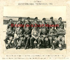 C Squadron, Leicestershire Yeomanry in 1952. Lt. Powell-Heath (3rd from left on front row) came originally from Packington.