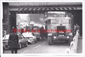 A container lorry stuck under the railway bridge on Tamworth Road - probably in the 1990's. View is inbound to Ashby (Our Lady of Lourdes RD church in far distance.)