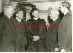 Kilwardby Street. Congregational church. Induction ceremony February 1959. L to R: Dr. Maurice Charles (principal, Paton Cong. College), Mr. George Goodrum (Hon Sec. Ashby Cong. chapel), Revd. Clifford Frederick Small (newly inducted minister of Ashby & Newton Burgoland). Revd. Solomons IModerator of the province), Revd. Ralph Ackroyd, Plymouth.