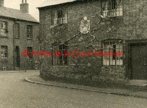 Coronation of Elizabeth II, June 1953. Cottages on the corner of Wood Street/Upper Church Street, decorated for the coronation. Thrd photo shows a gathering in probably the Town Hall.